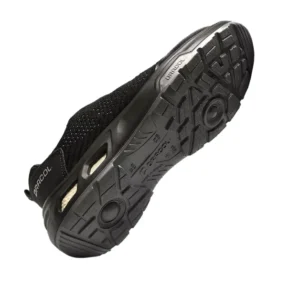 Calzado de seguridad tipo zapatilla con cordones, cuello acolchado, fabricadas en tejido, forro interior no tejido y plantilla de alta absorción con tratamiento hidrófugo.